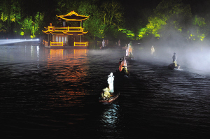 《印象西湖》的火爆,僅僅是杭州夜間演出市場的冰山一角。在城市的東面和南面,另外兩臺演出,《西湖之夜》和《宋城千古情》,每晚同樣爆棚,節假日和黃金周常常一票難求。今年《宋城千古情》上半年接待觀眾達160多萬人次,同比增長了35%,平均每周上演30場。為了滿足不斷增長的市場需求,主辦方把座位從2000個增加到3000個,今年在節目單中新加入了越劇《十八相送》,滿足外地客人的需求。