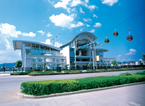 天門山索道全長7455米,是世界最長的高山客運索道。整條索道以張家界市中心的城市花園為起點,直達天門山頂的原始空中花園,猶如一道彩虹飛渡人間天上,又似一條巨龍騰翔素云蒼穹,依山籍壁,恢宏壯觀。索道沿途經過現代城市風光,秀美田園風光以及雄奇高山風光,堪稱世界第一空中移動觀景長廊。