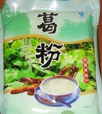 與蕨粉(野生),巖耳一起統稱張家界的三寶,是由一種生長在大山深處的植物葛的根部研磨而成,呈粉末狀。吃的時候先兌少許冷開水,再在鍋中兌水煮沸、攪拌、配白糖,頓呈晶瑩糊壯,嘗之絲滑入喉。因為葛難尋,葛根粉便成為了土家人平日用來招待貴客的小吃,它不僅味獨特鮮美而且有褪火清腸的功效,是純綠色食品的典型代表。