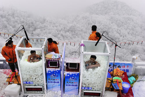 2011年1月3日,來自黑龍江的耐寒奇人金松浩和陳可財,在海拔1518.6米的天門山主峰云夢仙頂進行“冰凍活人”極限耐受力大比拼,兩人在冰天雪地的高山戶外被冰塊埋置頸部比拼耐凍的持久能力。最終,金松浩堅持時間長達120分鐘,成為世界第一“冰人”,陳可財也堅持到118分鐘,兩人雙雙打破吉尼斯世界紀錄。