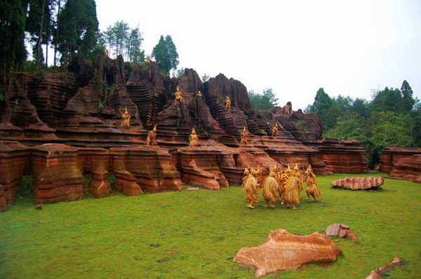 每一個看過《紅樓夢》的人或者都曾為寶黛之間那纏綿悱惻卻終究難以圓滿的愛情而黯然神傷,可是卻鮮有人知道遠離金陵繁華地的三苗蠻地,卻真實地演繹著守候數(shù)億年的木石之緣。湘西那一片密林帶著些執(zhí)著的癡傻,守護著這姿態(tài)萬方而神秘的紅石林,而這紅石亦以自己的篤定,回應(yīng)這片林木,任由斗轉(zhuǎn)星移,海枯山崩。